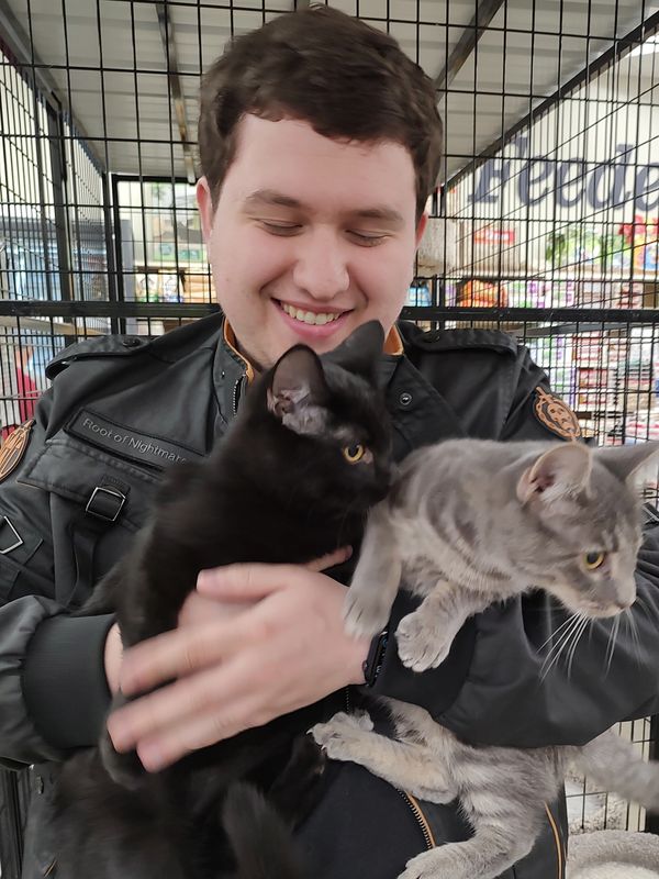 Blade and Merle found the purr-fect guy at Feeder's Supply!