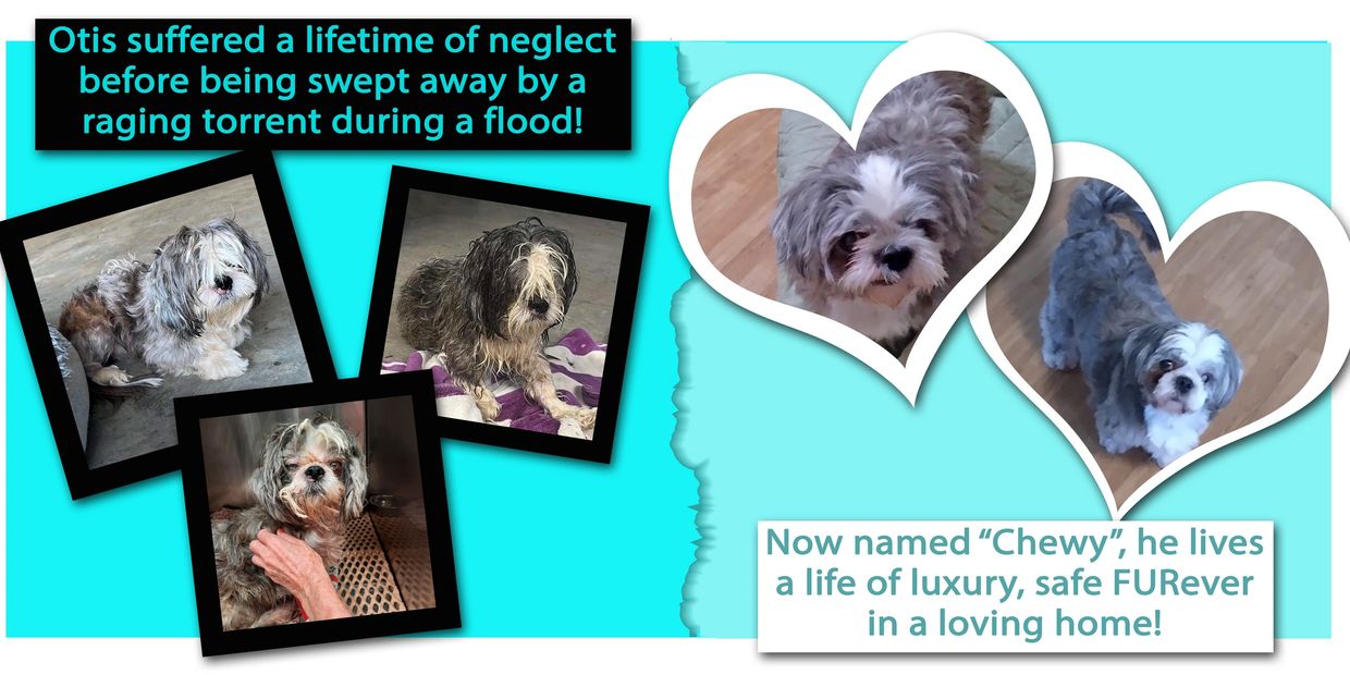 This little dog was rescued in the heavy rains of August, 2022. He was being swept away in rushing waters and good hearted woman from the community waded in and saved him from drowning.
