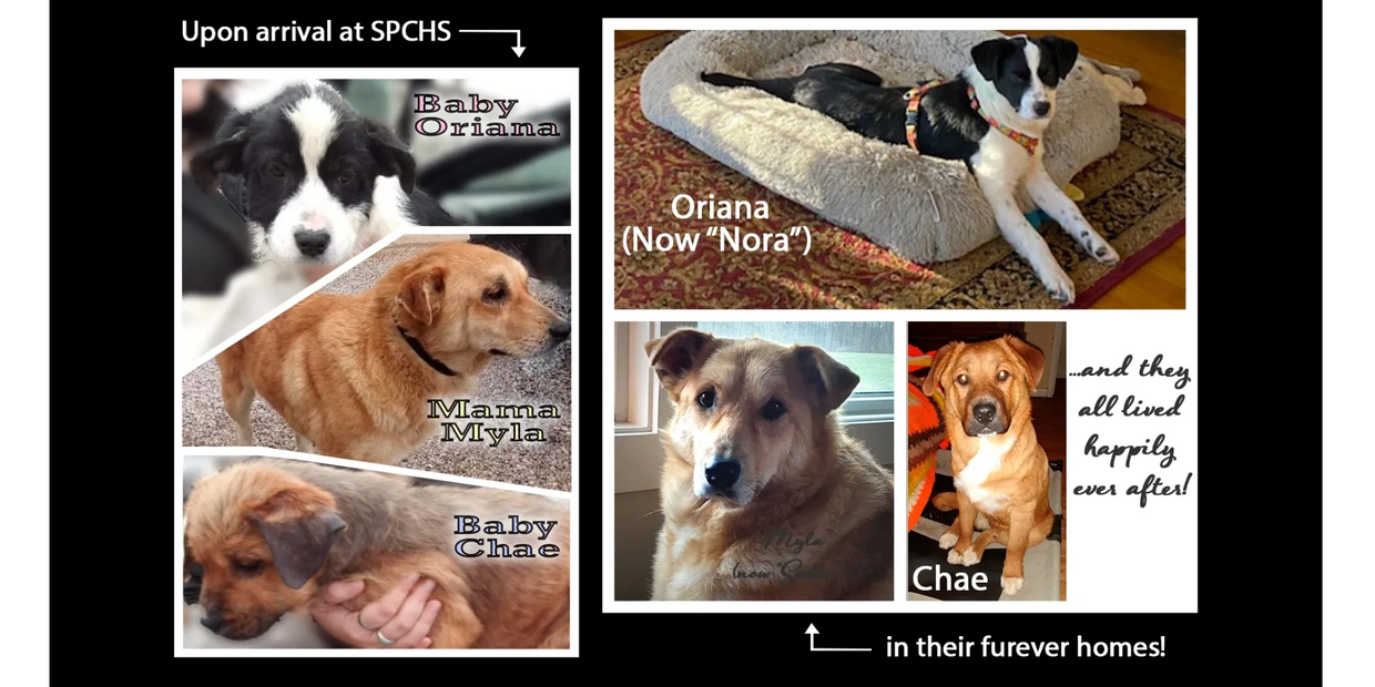 Exactly 1 year ago, as 2021 was drawing to a rapid close, a young couple from Pennsylvania visiting for the holidays found a mom & pups in the woods in the Nancy/Faubush area. They bathed them and kept them in their vehicle overnight, then brought them to the SPCHS building the next day. Even though all our usual supporting veterinary clinics were double-booked with emergencies, we were able to get them in to see a veterinarian on New Year's Eve! They have sarcoptic mange, were wormed and treated for mange, given preventatives, and sent home with their new foster mom, along with multiple medications to be taken every 12 hours.